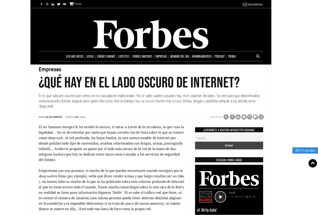 The journalist Lucía Martín has written an article on the deep web with the help of hackers Yago Hansen and Yanko Kolev. “In the conventional network, in each communication, my public IP appears, which is like my home address on the Internet. Through Tor Browser, which is the easiest program to navigate this network, your…